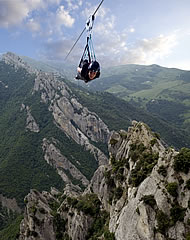 Un’avventura a contatto con la natura e con un paesaggio unico, alla scoperta della vera anima del territorio. Legati con tutta sicurezza da un’apposita imbracatura e agganciati ad un cavo d’acciaio, il visitatore potrà provare per quale minuto l’ebbrezza del volo e si lascerà scivolare in una fantastica avventura, unica in Italia ma anche nel Mondo per la bellezza del paesaggio e per l’altezza massima di sorvolo.