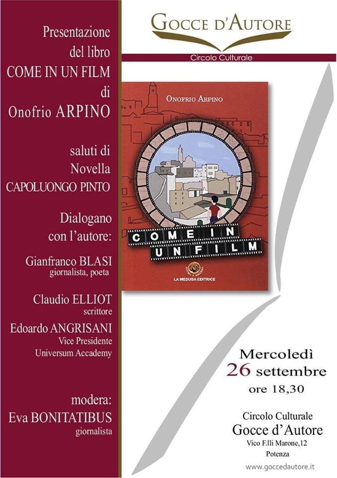 “Come in un film” di Onofrio Arpinor 26 sett h 18,30